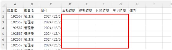 ご利用の端末にCSVフォーマットがダウンロードされます。