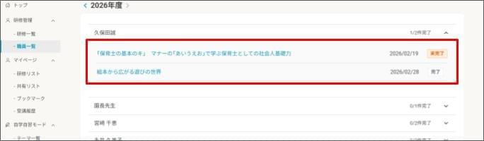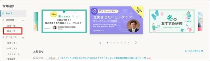- [保育研修(コドモンカレッジ)] をクリックします。