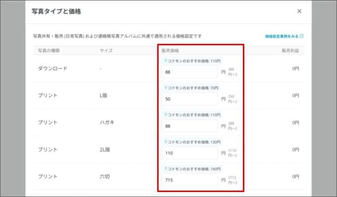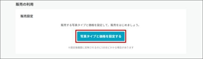 - 「販売の利用」> [販売設定] の [写真タイプと価格を設定する] をクリックします。
